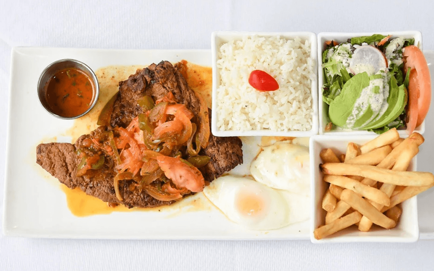 Food was great!! First time trying Ecuadorian food. Recommend: pollo a la parrilla, empanadas de verde, and churrasco. The beans had a good flavor. The piña colada was on point